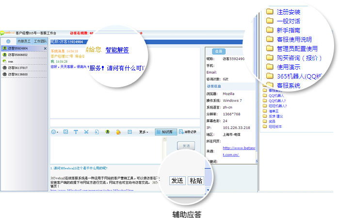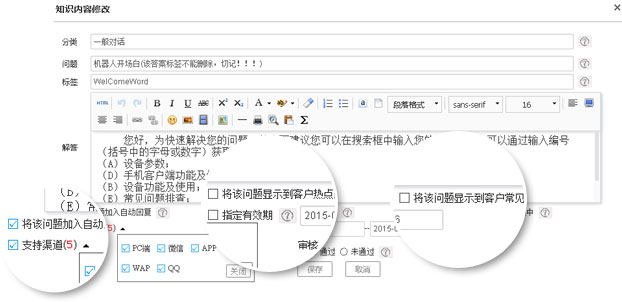 365webcall智能知識庫全媒體接入,統(tǒng)一管理、智能解答、熱點問題、常見問題、人員權(quán)限管理。